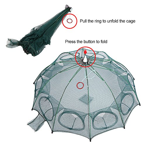Lixada - Lixada 8 Side 8 Holes 93 * 93cm Large Automatic Foldable Fishing Net Trap Shrimp Cage