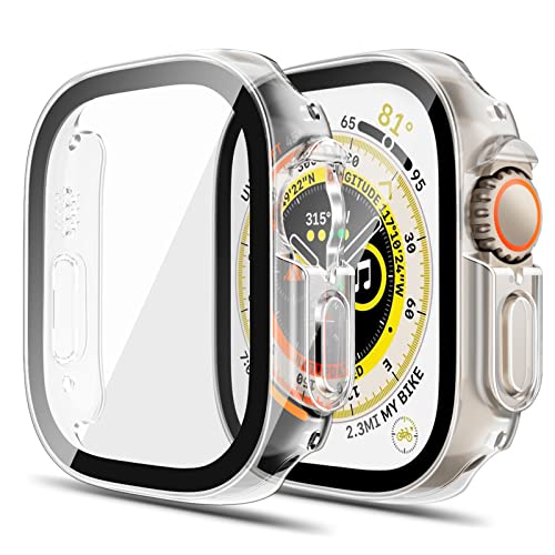 LK - LK 2 Pack Hard PC Case Compatible with Apple Watch Ultra 49mm, Apple Watch Watch Ultra Case with Built-in 9H Tempered Glass, Scratch-Resistant, Touch Sensitive, Shockproof Case for iWatch Ultra, Clear