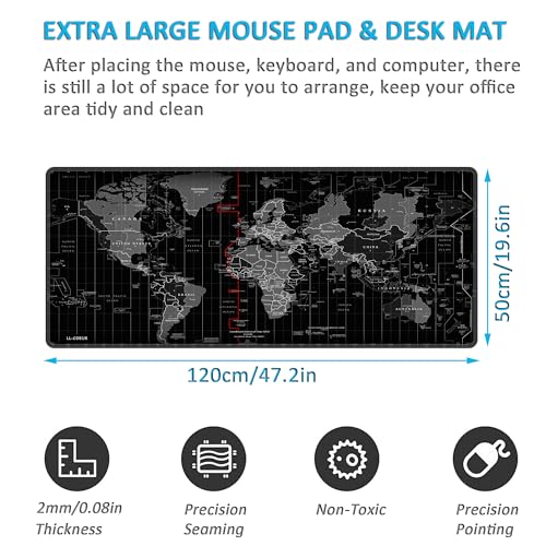 LL-COEUR - LL-COEUR XXL Gaming Mouse Mat Laptops Mouse Mat World Map Desk Pad (1200 x 500 x 2 mm)