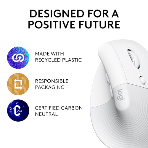 Logitech - Logitech Lift Vertical Ergonomic Mouse, Wireless, Bluetooth or Logi Bolt USB receiver, Quiet clicks, 4 buttons, compatible with Windows/macOS/iPadOS, Laptop, PC - Offwhite