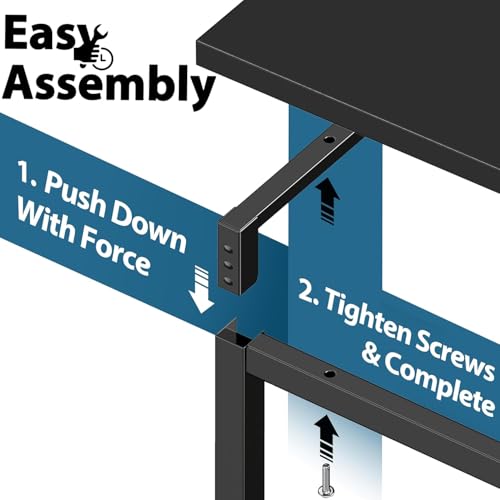 • Modern and simple design: a sturdy black metal frame computer desk and spacious work surface provides enough space for 2 screens, keyboard and work accessories