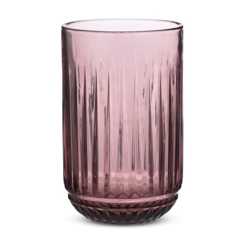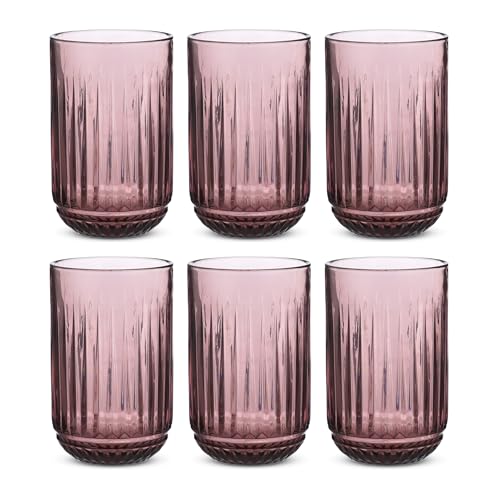 - ELEGANT DESIGN: Set of 6 long tumblers featuring a sophisticated ribbed texture pattern with a decorative base detail in a beautiful dark mauve colour