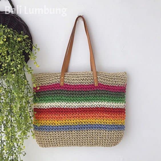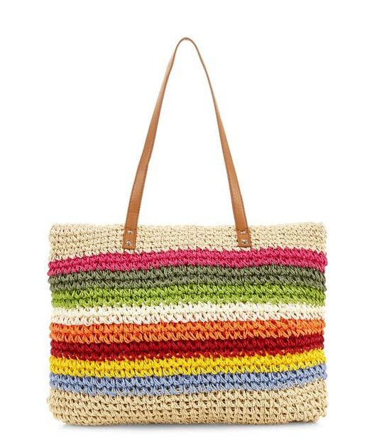 Generic - شنطة نسائية انيقة - بيج فى الوان - سعة كبيرة - يد جلد قوي - لاكي كروشيه ستور