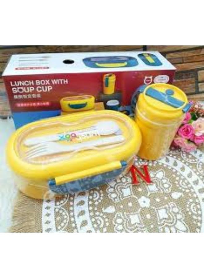 Generic - طقم علب غداء مع كوب شوربة وشوكة وملعقة (اصفر)