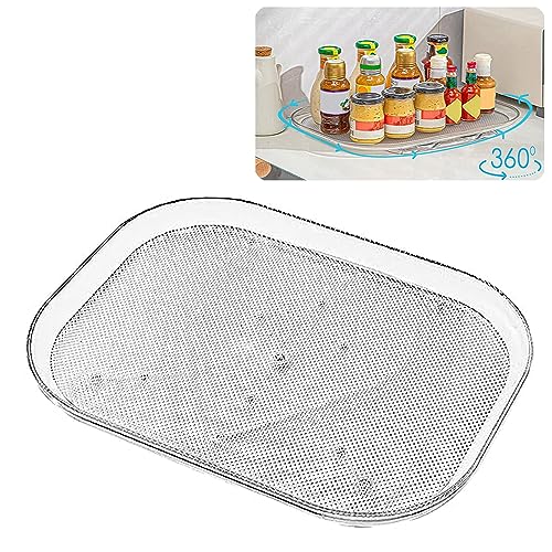 LUNKOEN - Lazy Susan Turntable Organizer for Refrigerator Clear Rectangular Fridge Organizer Storage Countertop Condiment Storage Rack Turntable Kitchen