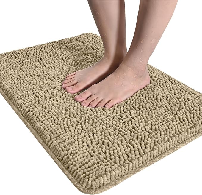 Generic - Luxury Bathroom Rug Shaggy Bath Mat 24 x 36 Inch, Washable Non Slip Bath Rugs for Bathroom Shower, Soft Plush Chenille Absorbent Carpets Mats, Beige