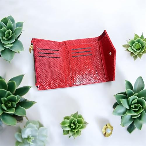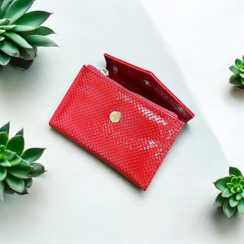 • PREMIUM DESIGN: Elegant woven pattern red leather wallet featuring a sophisticated envelope-style design with magnetic closure for secure fastening