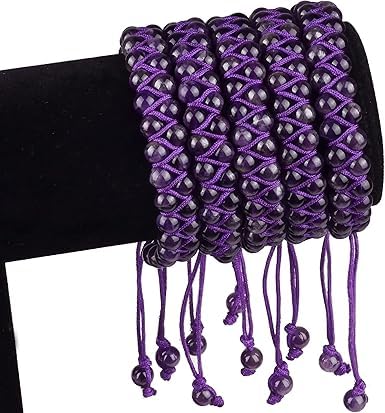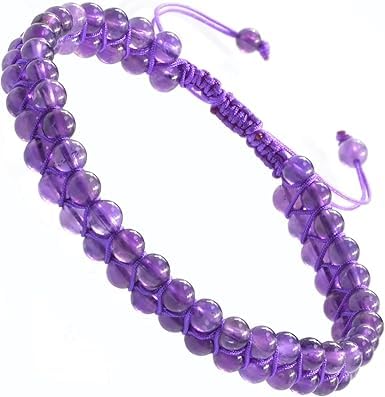 Generic - M.A.S Natural Chakra Healing Power Crystals Macrame Bracelet Yoga Double Layer Stone Beads Gemstone Meditation Relax Anxiety Bangle for Unisex Women Men (Amethyst, 6mm)