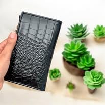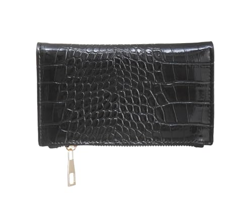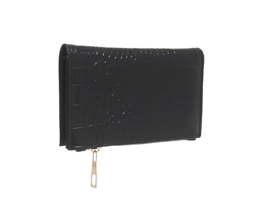 M A - M A Shiny Leather Wallet 16 x 9 cm For Women – Black-M1-008-BL