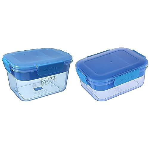 M-DESIGN - M Design Lunch Box, 2.3 Liter - Blue + 1.6L Lunch Box with Tray - Blue - Blue Clips