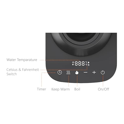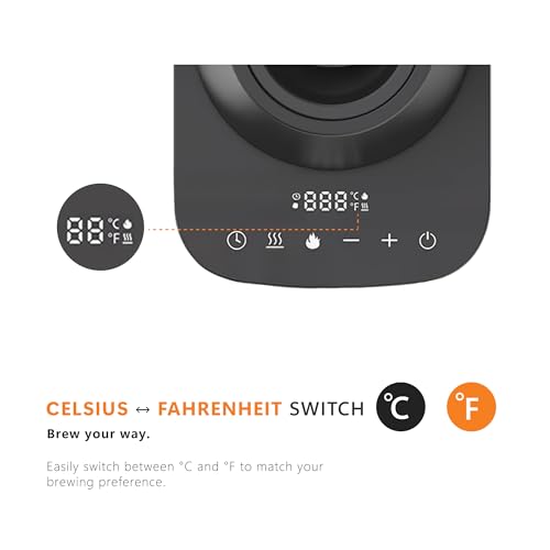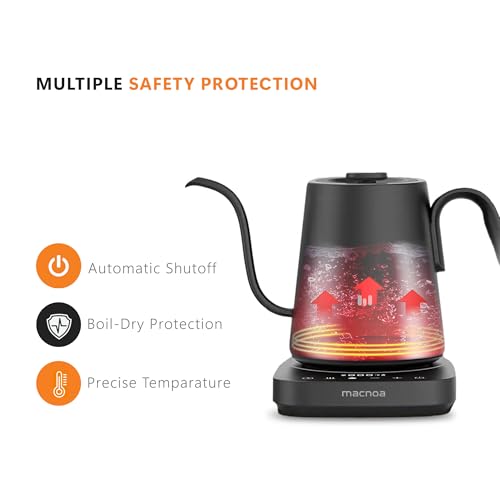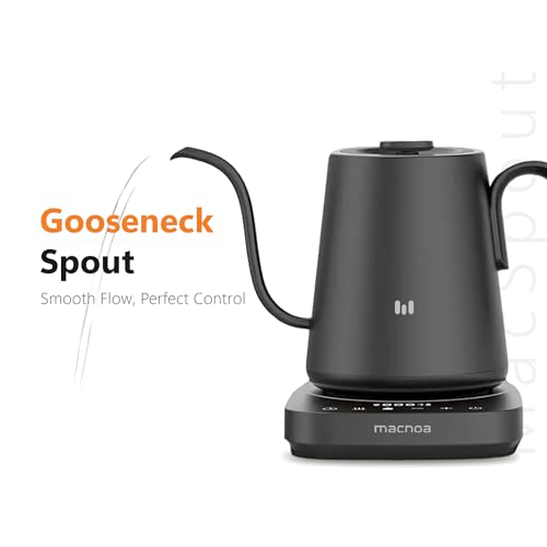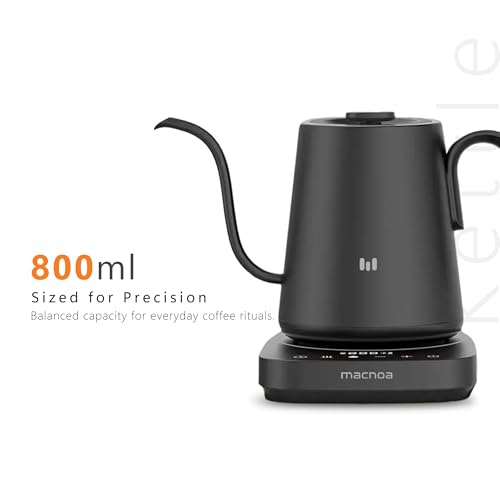 MACNOA - MacSpout 800ml Electric Kettle with Gooseneck Precision Spout | Adjustable Temperature 40~100°C | Keep Warm Function | 1200W Fast Boiling Stainless Steel Pour-Over Kettle for Coffee Tea Brewing