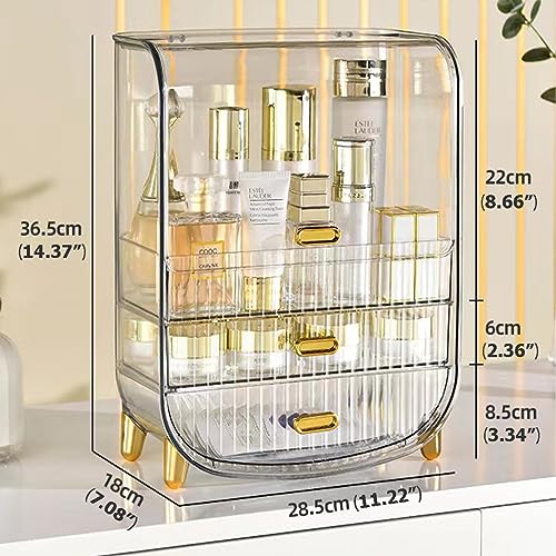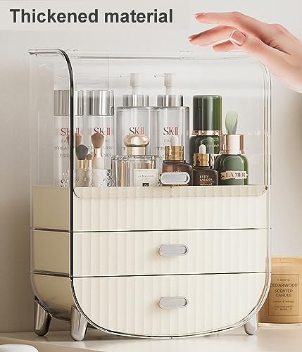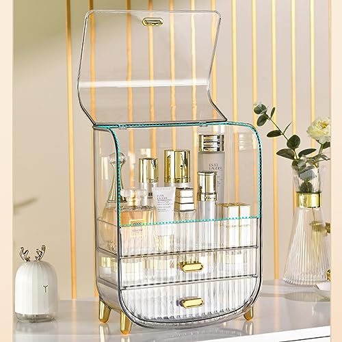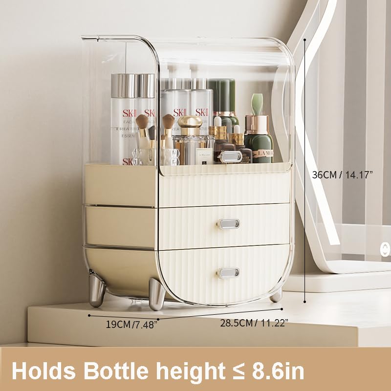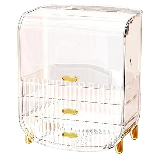 • 【تصميم عملي】منظم تخزين مستحضرات التجميل الخالي من الغبار والمزود بغطاء حصري وأنيق ليلائم ديكور أي غرفة، يمكنك وضعه في غرفة نومك، أو الحمام أو غرفة الملابس أو الطاولة الجانبية للسري، أو سطح الزينة. يسمح لك الغطاء الشفاف برؤية ما تحتاجه بوضوح أكبر.