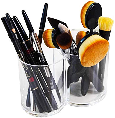 MAKINGTEC - حامل كرات واعواد القطن من ميكينج تيك، صندوق تخزين متعدد الاغراض للفرش ووسائد المكياج، مصنوع من اكريليك شفاف بتصميم دائري