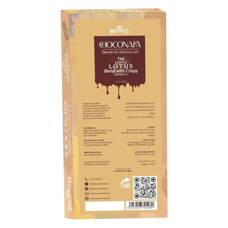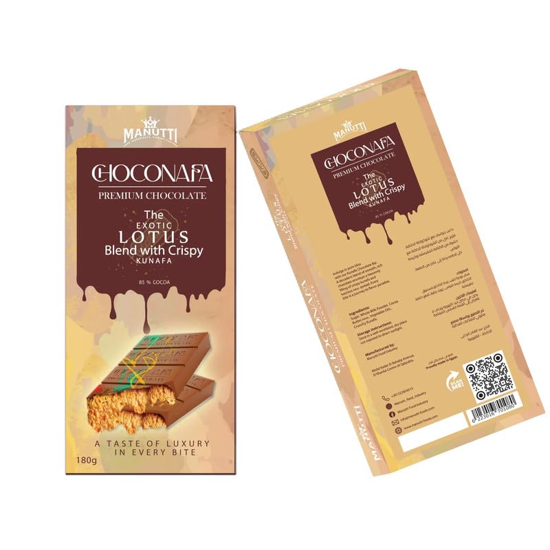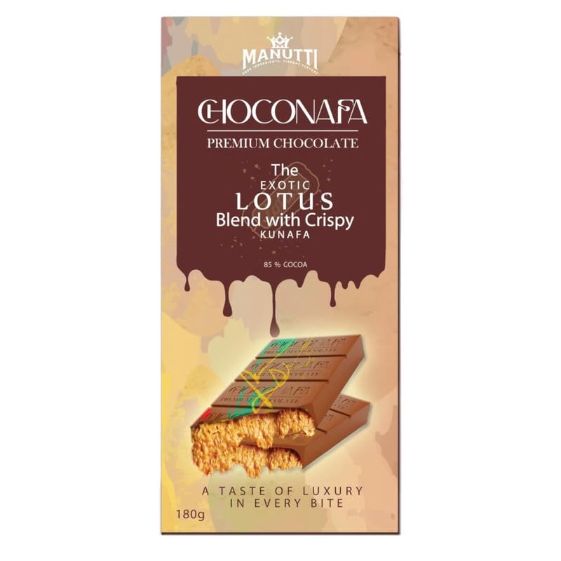- Indulge in the rich fusion of traditional kunafa and luxurious lotus chocolate delight.