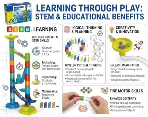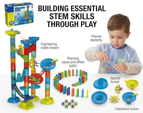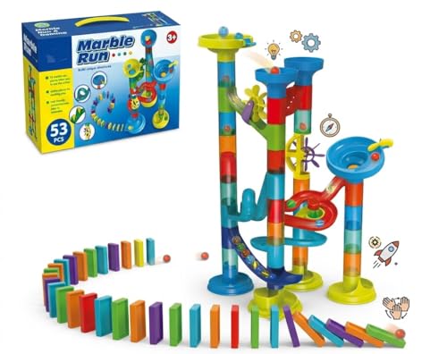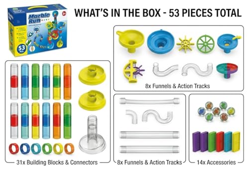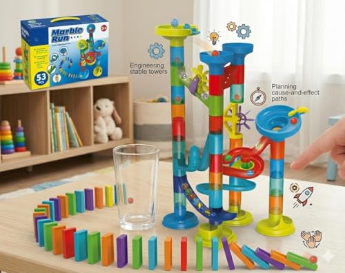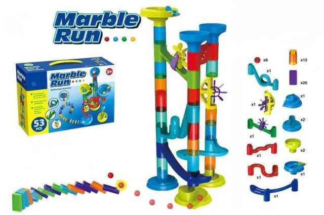 Generic - لعبة ماربل رن 53 قطعة – مجموعة مكعبات بناء زجاجية للأطفال 4-8 سنوات – لعبة متاهة تعليمية وسباق كرات – تنمي التفكير والإبداع
