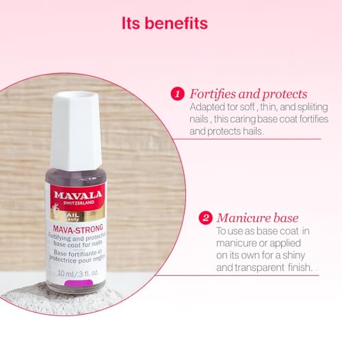 - Mava-strong fortifying base coat in a 03-ounce bottle