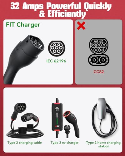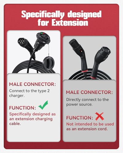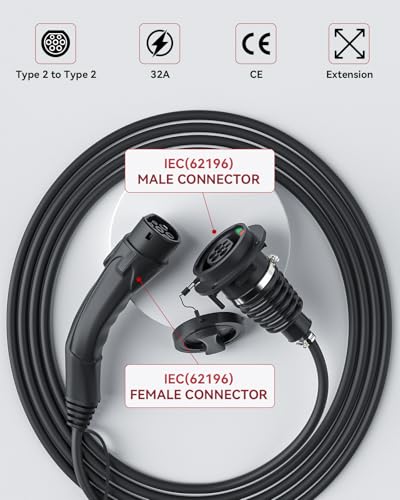 - ⚡Universal Application: The Type 2 extension cord is compatible with all Type 2 charging cables, including Type 2 to Type 2 EV charging cables, Type 2 portable EV chargers, Type 2 AC charging stations, and all other IEC 62196 chargers.