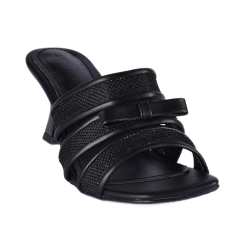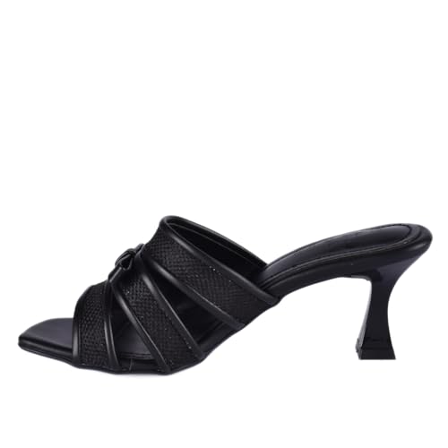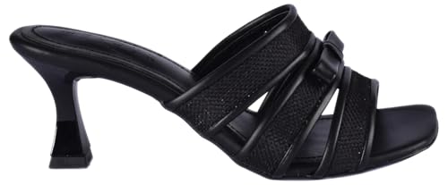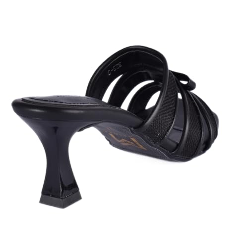 Melouk - womens Embossed Leather Heel Slipper-Black Heeled Sandal