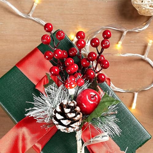 - Artificial berry decoration: Picking red artificial berries looks festive and colorful, symbolizing a beautiful life. The berry has a diameter of about 0.4 inches and a total length of 8.6 inches, making it perfect for Christmas decoration