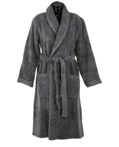Generic - Men's Fur Robe, Grey, Winter Robe, with Belt and Pockets, Shawl Collar, Long, One Size
