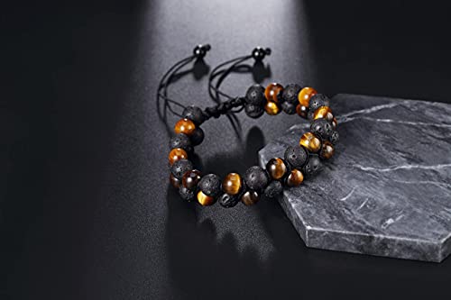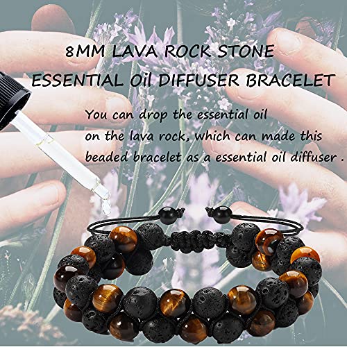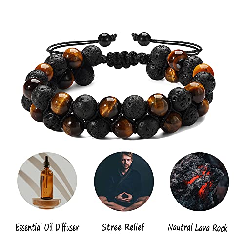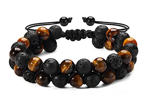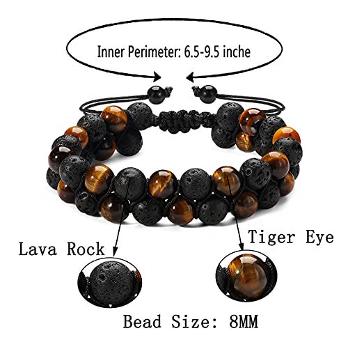 generic - Men Women Tiger Eye Lava Rock Stone Beads Bracelet 8mm Double Layer Natural Gemstone Beaded Anxiety Bracelets Adjustable Braid Aromatherapy Essential Oil Diffuser Bracelet
