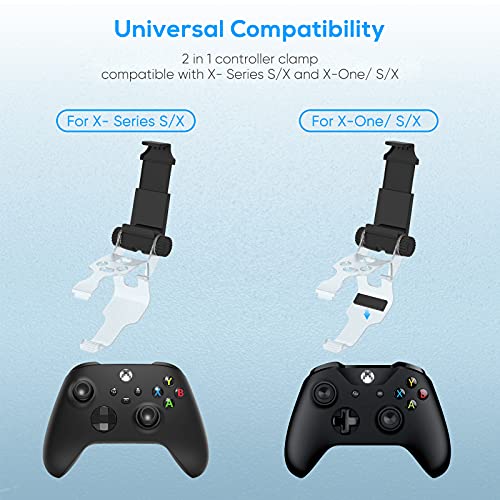- 【Compatible with】 This mobile phone clamp clip is specially designed for Xbox Series S, for Xbox Series X, for Xbox One, for Xbox One X, for Xbox One S. Easy to install and connect controller and mobile phone. Suitable for most smartphones on the market, such as Android phones Samsung, HTC, LG, Google, Sony, etc.