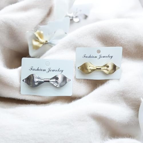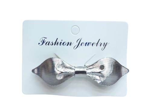 Generic - دبوس شعر على شكل فيونكة معدنية، تصميم مخطط، ذهبي وفضي، إكسسوار أزياء