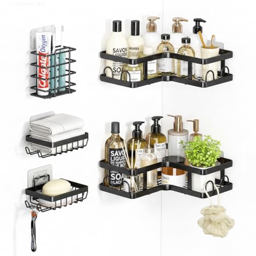 Generic - طقم ركنة معدن 5 قطع مع دابل فيس – ركنة شاور أو مطبخ متعددة الاستخدام – يشمل صبانتين وحامل فرشاة Bk