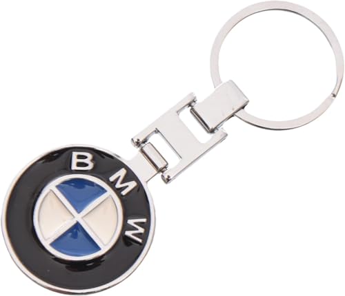 Generic - ميدالية وسلسلة مفاتيح مصنوعة من المعدن بنمط السيارة العصري مع ميزة عائمة وشكل دائري، لون أبيض/أزرق