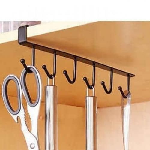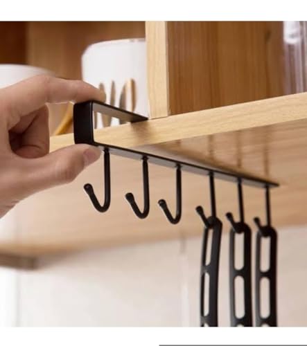 Generic - رف تعليق معدني للمطبخ، أبيض او أسود ، مع خطافات متعددة، تركيب تحت الرف، مناسب للألواح حتى ٢.٥ سم، للأكواب والأواني (اسود)