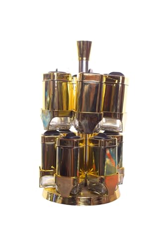 Generic - Metal Spice Jar Set with Holder, 12 Pieces - Gold