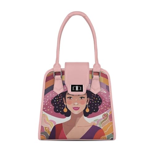 Generic - شنطة يد فنية من ميتروبوليتان تشارم، تصميم وردي وردي، طباعة زخرفية، شنطة كتف عصرية