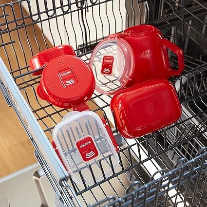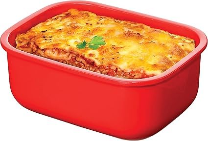 - علبة ميكروويف مستطيلة 525 مل من سيستيما - احمر/شفاف