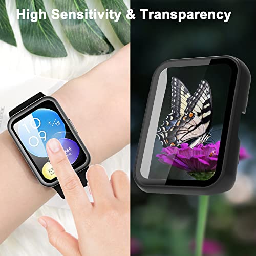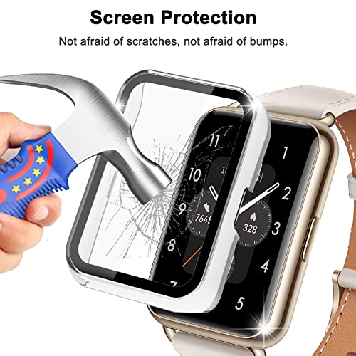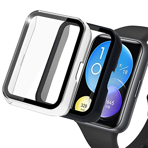 - [Full Protection] The Huawei Watch Fit 2 case is made of hard PC frame and clear tempered Glass screen protector, it can protect your Huawei Watch screen and curved edges from scratches, bumps and accidental drops and without adding any bulk.
