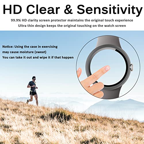 - [Full Protection] The Google Pixel Watch case is made of hard PC frame and clear tempered Glass screen protector, it can protect your Pixel watch screen and curved edges from scratches, bumps and accidental drops, without adding any bulk.