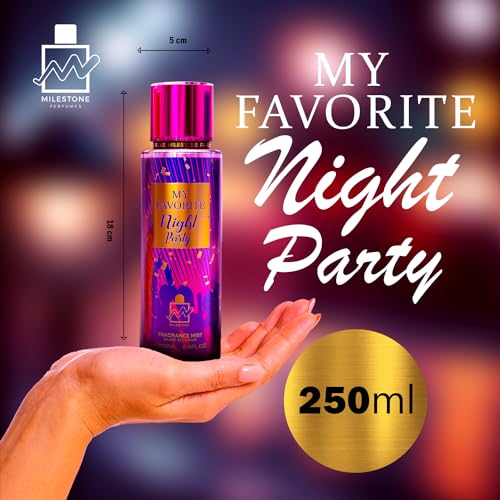 - 🌀 The Milestone Night Party Fragrance Mist For Women is a perfect complement to the fragrance from the same collection. It leaves the skin wonderfully scented, giving you a new burst of energy and self-confidence at any time during the day.