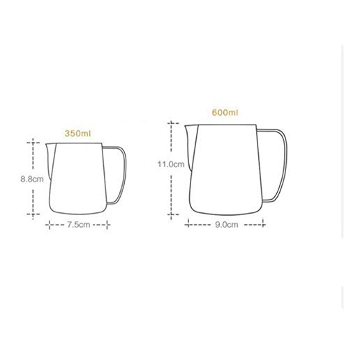 - ¡¾Dripless Spout¡¿This milk frothing pitcher cups has been designed with a professional eagle spout, which is pragmatic and convenient for achieving slow and precise pouring without splashing, helping make perfect coffee latte art