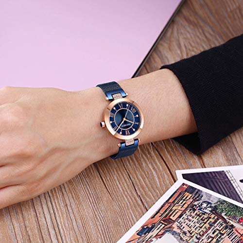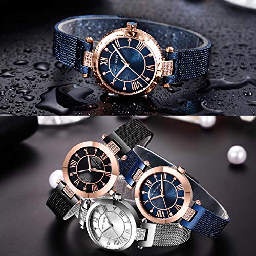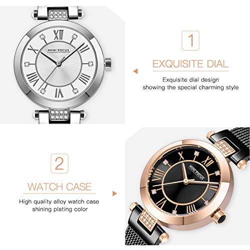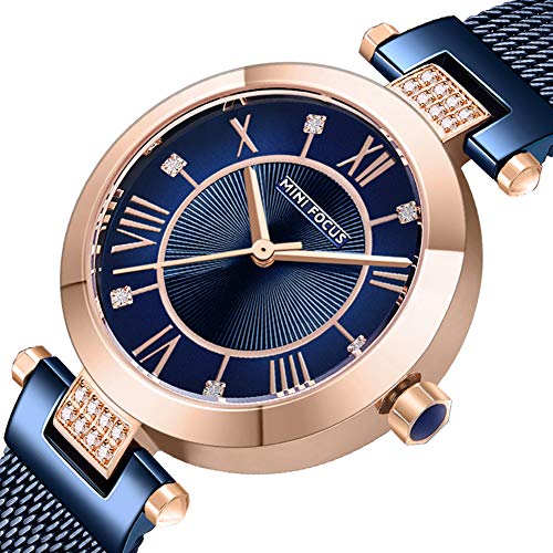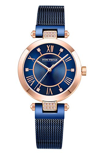MF MINI FOCUS - ميني فوكس ساعة عملية كاجوال نساء انالوج بعقارب معدن - MF0215L.04، بمينا أزرق، بسوار أسود