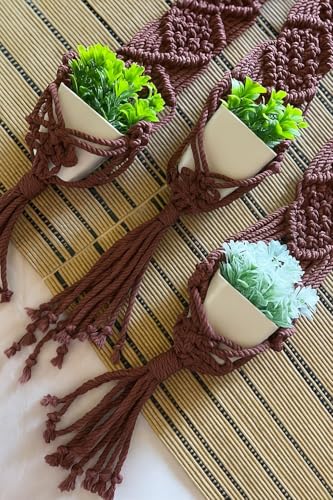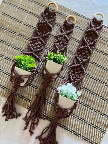 Generic - حامل نباتات بتصميم مكرمية مصنوعة يدويا للتعليق على الحائط، حامل يثبت على الحائط مصنوع من حبل قطن بشراشيب بتصميم بوهيمي أنيق، لون بني، مقاس 50 سم × 18 سم، مجموعة من 3 قطعة