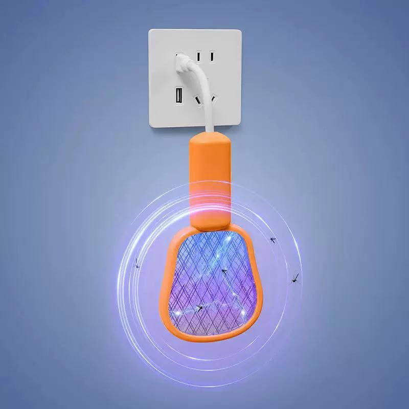 Spaceshoop - Mini Mosquito Killer Lamp 2 in 1 Multicunctional Angle Portable Bug Zapper Electric USB Rechargeable Mosquito Fly Bat Swatter (yellow)