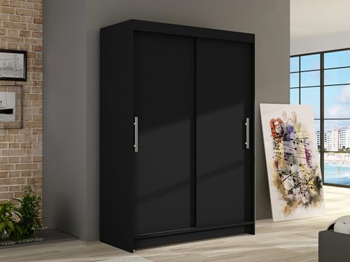 Mirjan24 - Mirjan24 Miami I Sliding Door Wardrobe, Modern Bedroom Cupboard, Black (Width: 120 cm, Height: 200 cm, Depth: 58 cm)