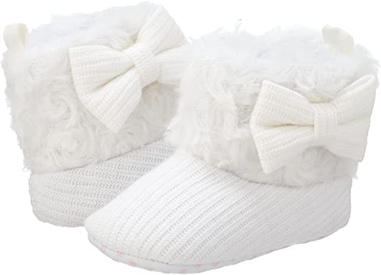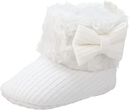 Mix&Max - Mix&Max fleece shoes with fur Bow for girls-0/6Month-White