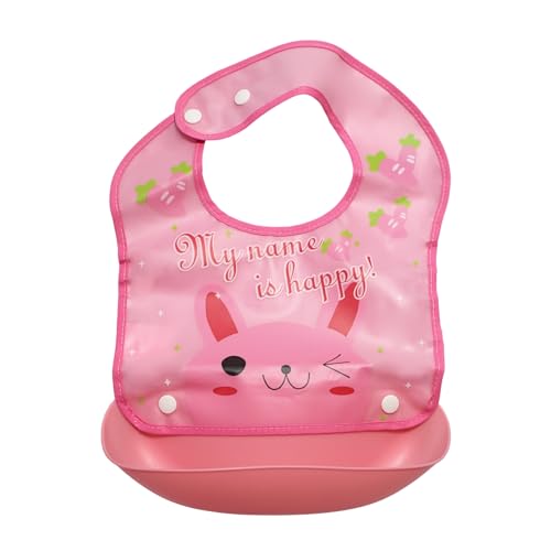 Mix&Max - Mix&Max Silicone Bib With Pocket Printed Cat For Girls-Pink