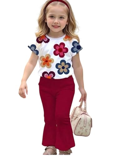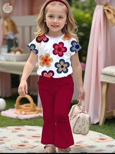 Meza - طقم بناتي قطعتين، تيشيرت قطن بطبعة ورد ملون وبنطلون اسكوبا بقصة واسعة، ملابس كاجوال للأطفال - سوت بنات من ميزا