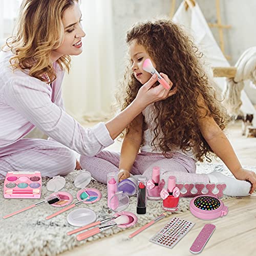 MJARTORIA - مجموعة مكياج قابلة للغسل للاطفال من م جارتوريا، مجموعة مكياج للاطفال مع شنطة مستحضرات تجميل للعب الادوار مناسبة للاطفال من عمر 3 سنوات، مثالية لهدايا اعياد الميلاد