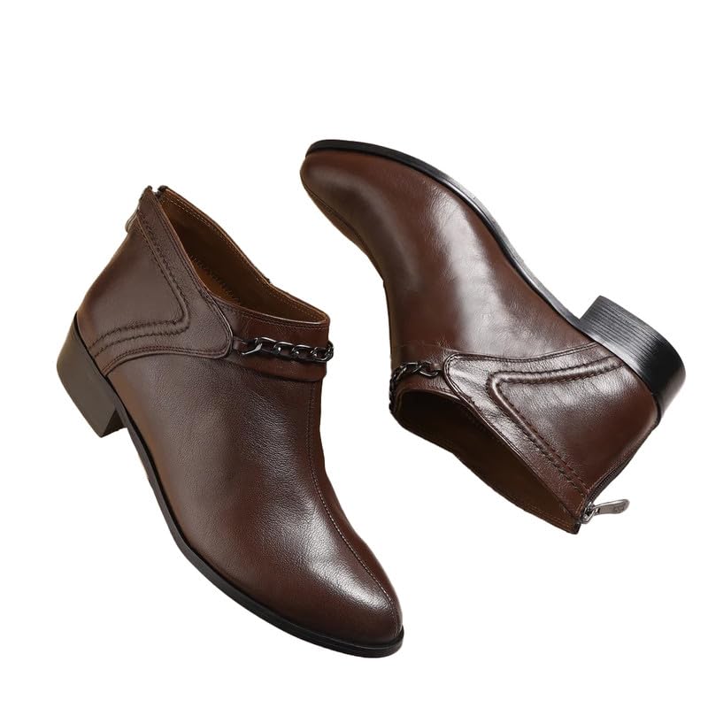 MO-ZALAT - Women’s Genuine Leather Ankle Boots – Side Zipper with Decorative Chain, Low Heel WB1112-Parent104