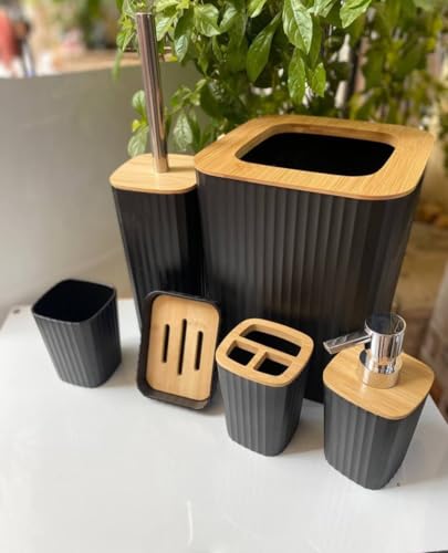 - مجموعة كاملة: تتضمن مجموعة إكسسوارات الحمام الحديثة المكونة من 5 قطع موزع صابون وحامل فرشاة أسنان وكوب وطبق صابون وحامل فرشاة المرحاض مع غطاء
