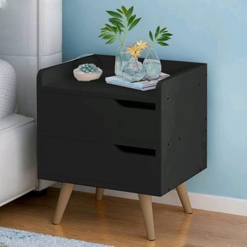 Generic - Modern MDF Nightstand with 2 Drawers, Wooden Legs, Bedside Table for Bedroom (Black)