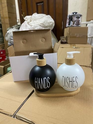 Generic - مجموعة موزع صابون عصري بقاعدة من الخيزران - زجاجات لليدين والاطباق لطاولة المطبخ وحوض الحمام وسائل غسيل الصحون