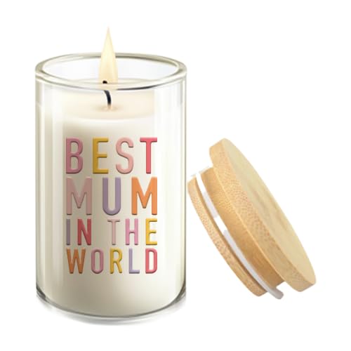 Generic - Mother's Day Scented Candle with Lid, Best Mum in the World Theme, Glass Container with Wooden Lid